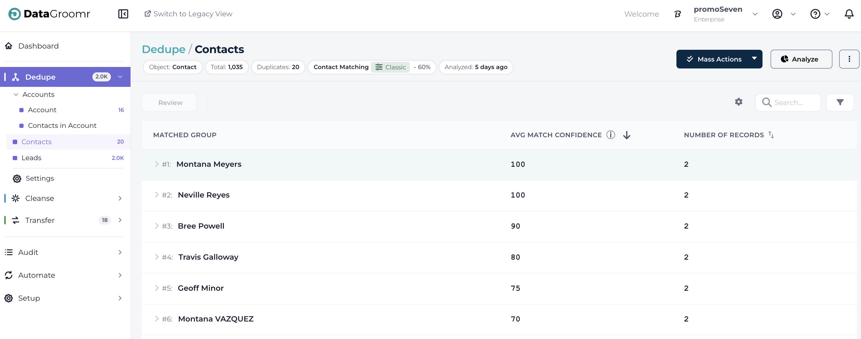 When complete, you can view the current state of your Salesforce data in the Dedupe Dashboard: