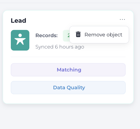 To remove object from DataGroomr, press extended menu option and select Remove object option.