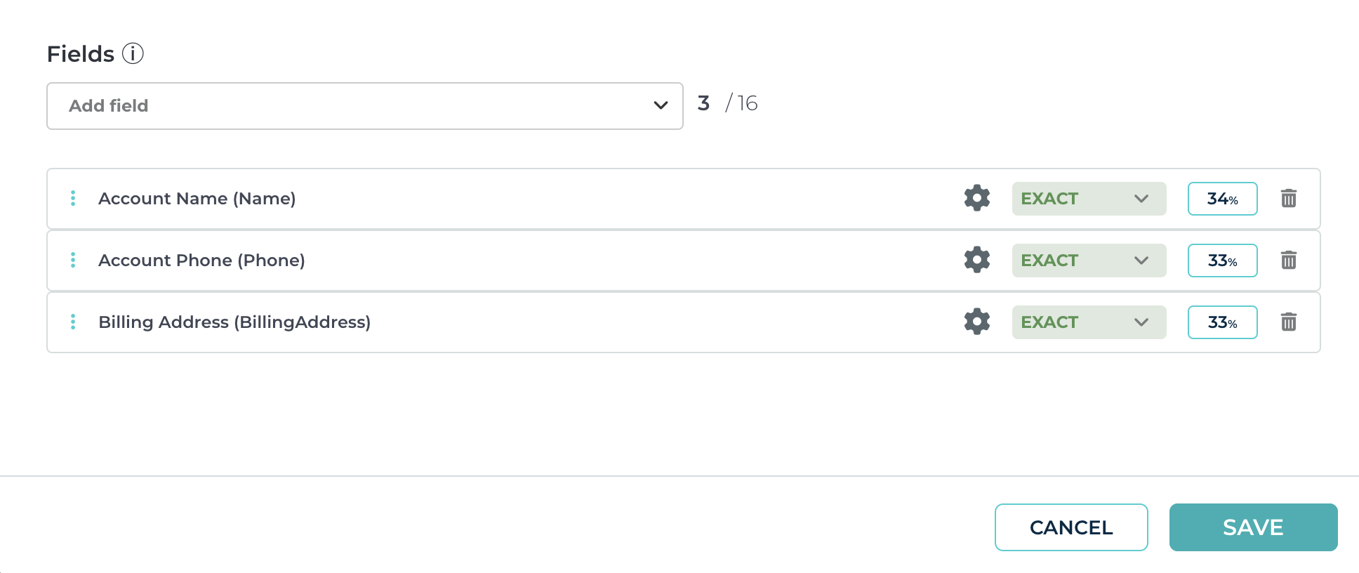 • Rule-based approach: You manually define which fields to compare (e.g., First Name, Email, Company) and assign weights to each.