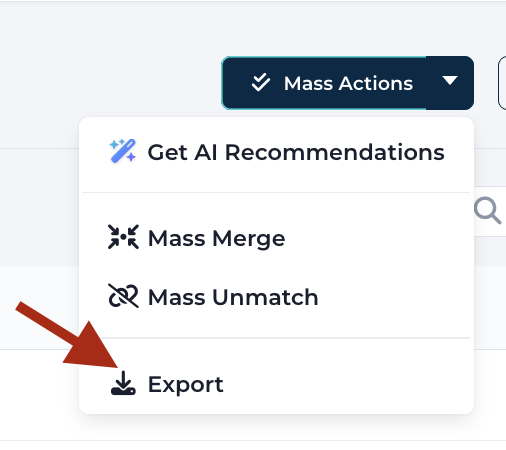 Duplicate records identified by DataGroomr may be exported for additional analysis or integration with external systems. There are two export options available: