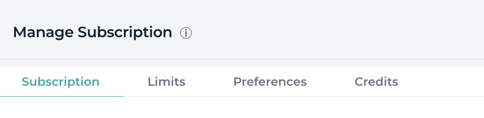 The Subscription tab summarizes your organization’s plan and usage. You can view: