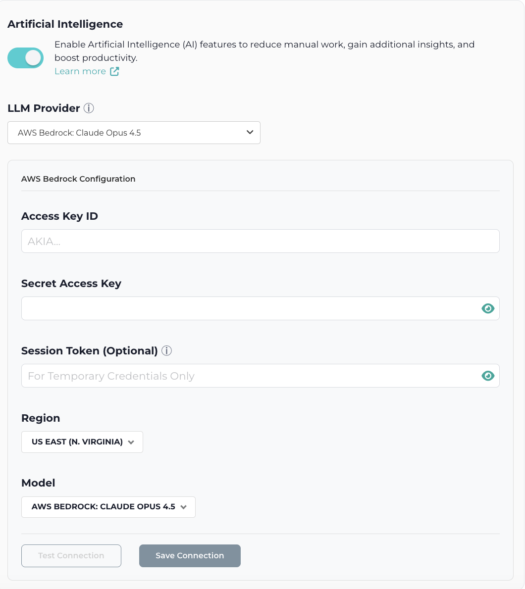 You can connect your own external AI model for record review.