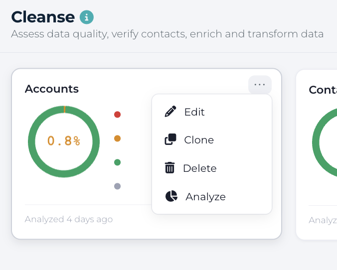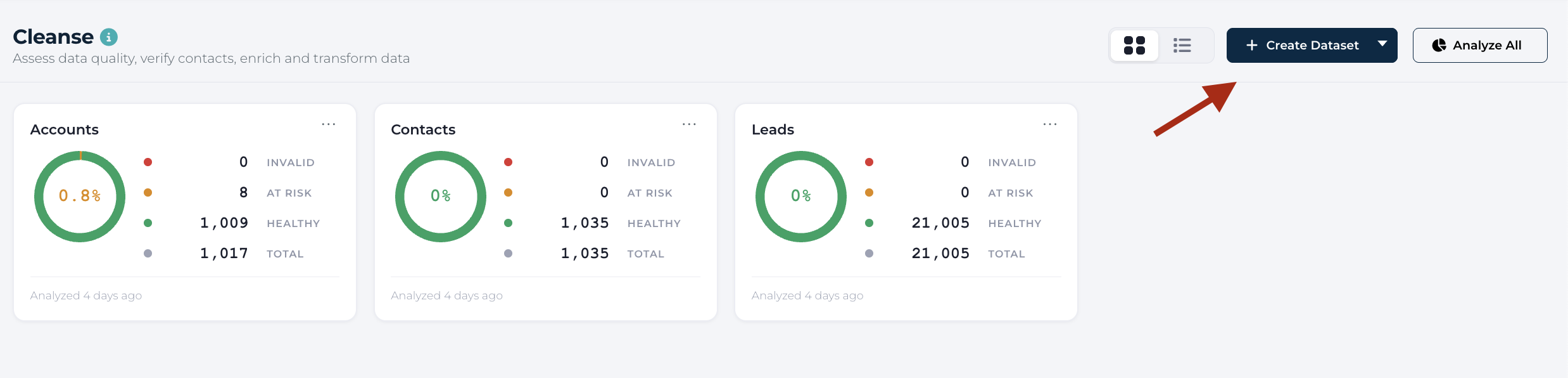 The Dataset dialogue consists of 6 tabs. You can learn more about configuring datasets by following this link. Once a dataset is created it will be displayed in its own tile on the Cleanse dashboard.