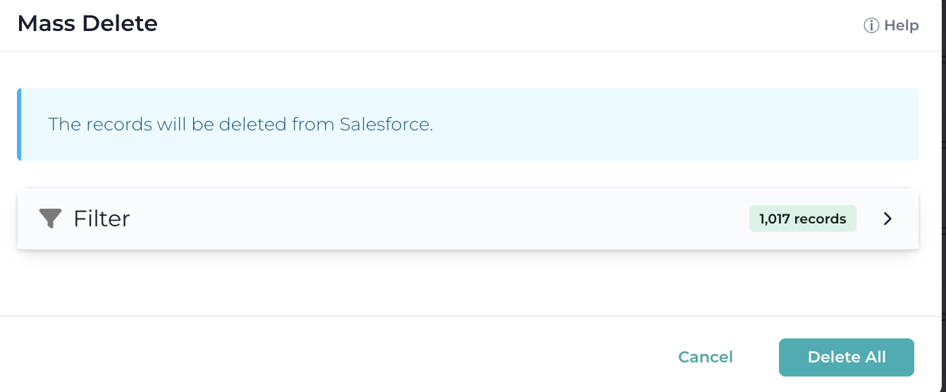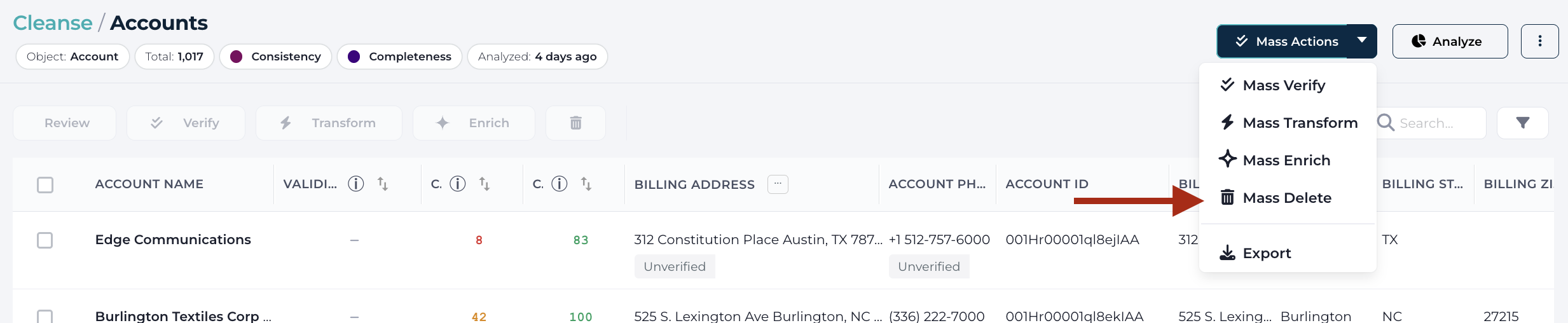 The Mass Delete is one of several bulk operations available in Cleanse. It allows you to remove all or some records inside a Cleanse dataset.