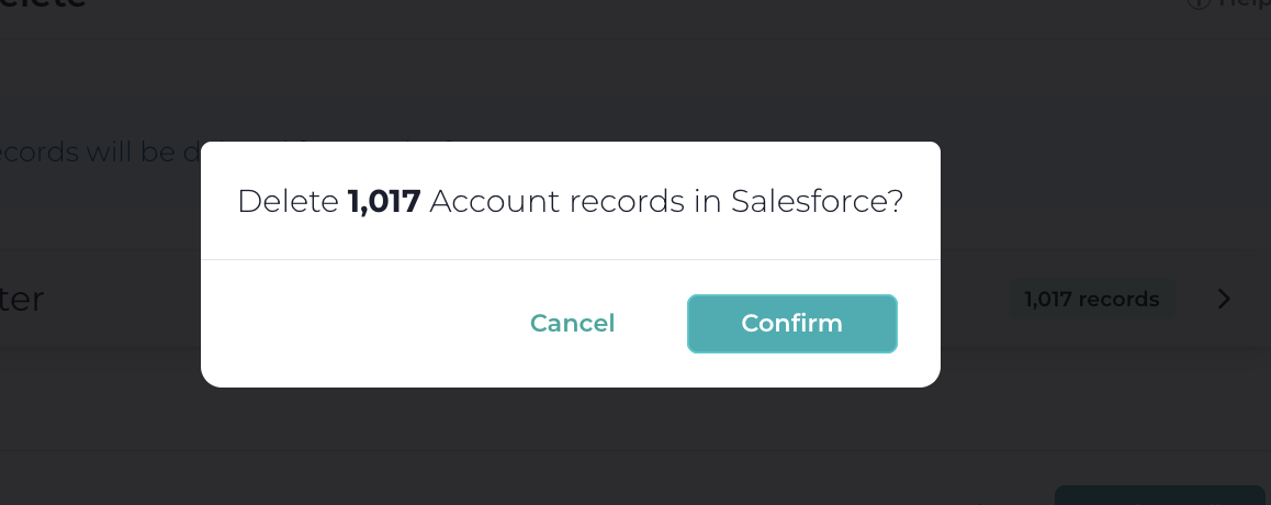 - Press the Confirm button to delete the selected records. If you stop a Mass Delete job, the process halts correctly and can be undone as expected.