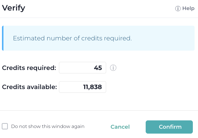 Once you made your selections, press the Verify All button. Review the number of credits that will be required to perform this operation and press the Confirm button.