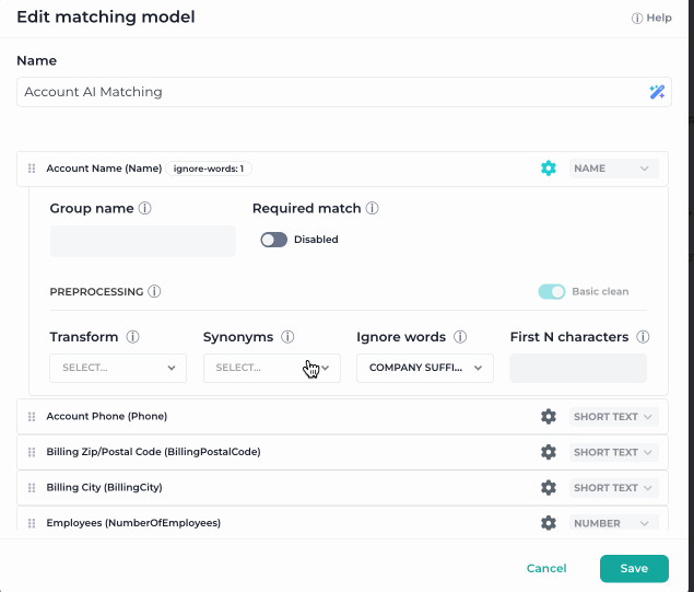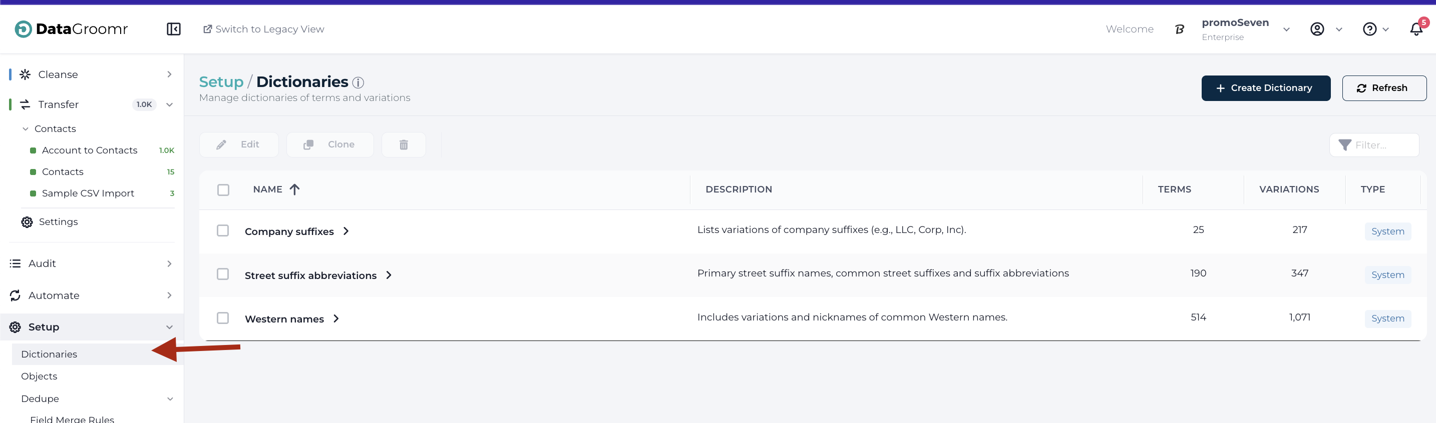 Dictionaries are used to make your matching models and transformation rules smarter, efficient and more accurate. They are referenced within Classic and Machine Learning models to group or ignore similar names, keywords or abbreviations together and can be used in the Transform rules to do mass updates.
