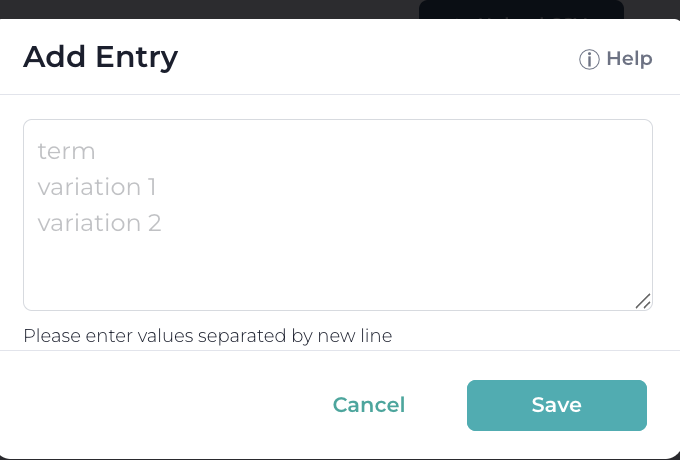 The Dictionaries feature is accessible through Setup>Dictionaries. Then create your own Dictionaries by using the Add Dictionary button or by cloning an existing dictionary and adding entries.