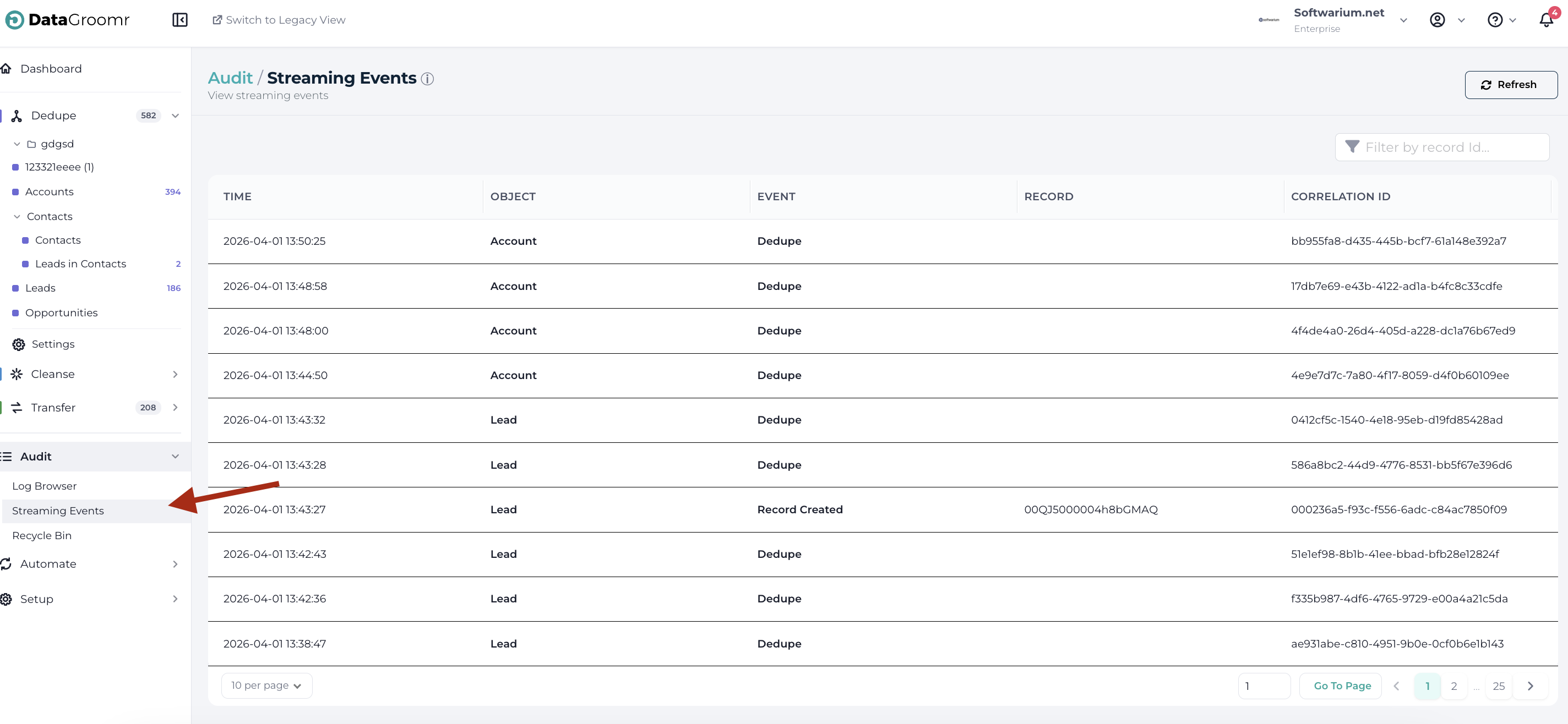 This page lets you view real-time events which are related to Live Dedupe and Triggers.