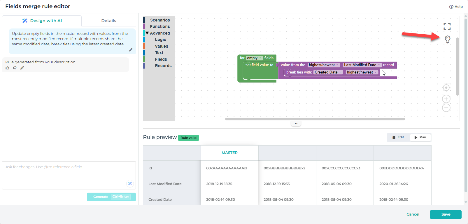 This not only saves time but also lowers the barrier for non-technical users, who can rely on natural-language prompts rather than having to understand every detail of rule syntax. It also encourages experimentation: users can try different approaches quickly and refine them until the logic matches business needs.